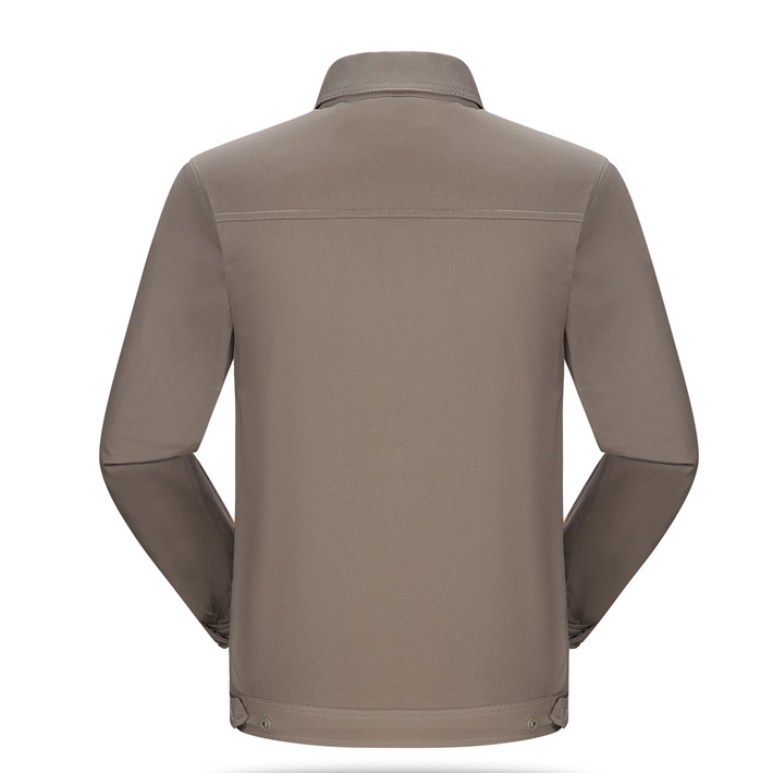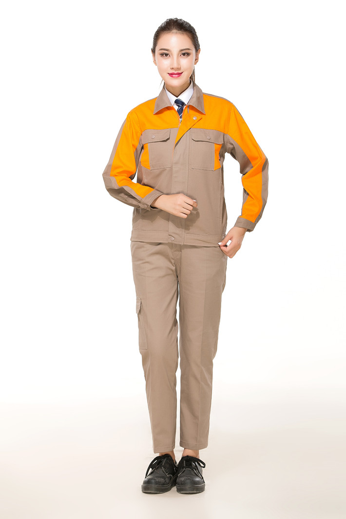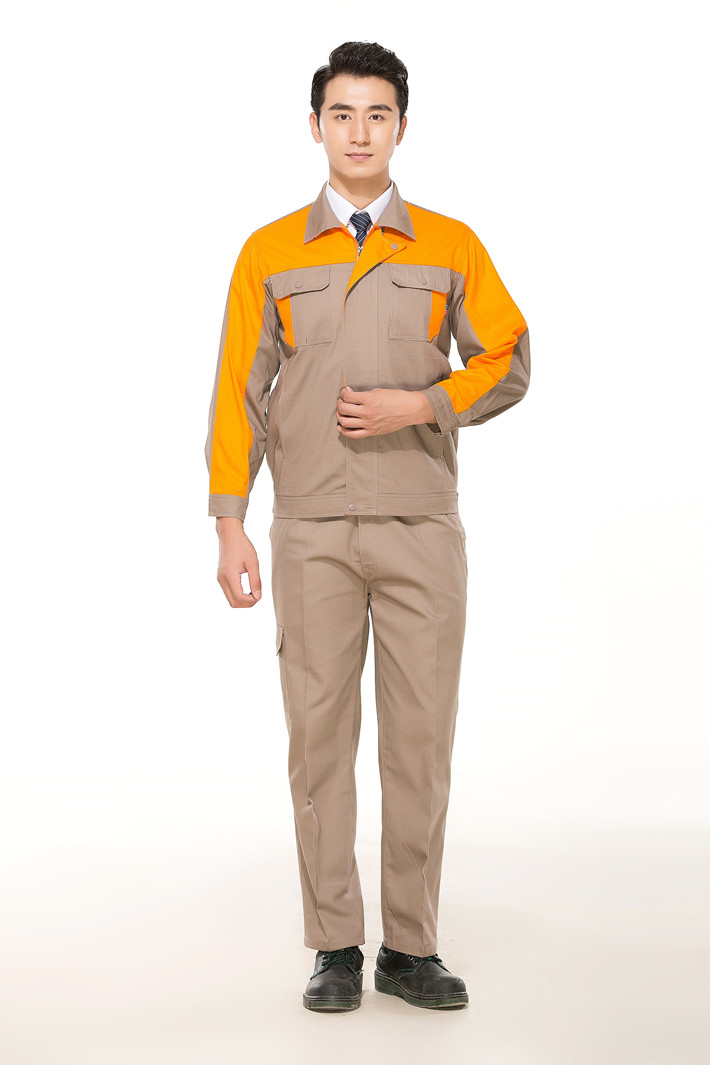 淮南全棉工作服定做款式灰色拼桔黃色長(zhǎng)袖套裝GZ-8017
