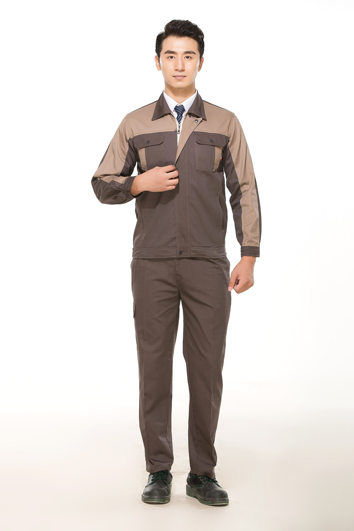 淮南工作服定做廠家定制煤礦機械工廠全棉卡其色拼灰色GZ-8023