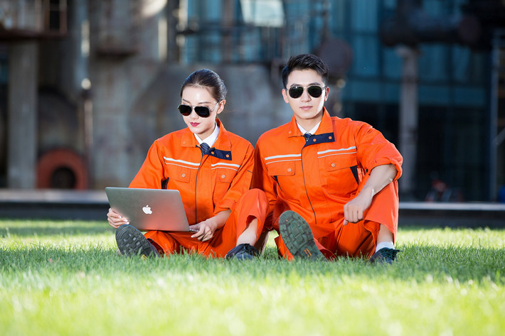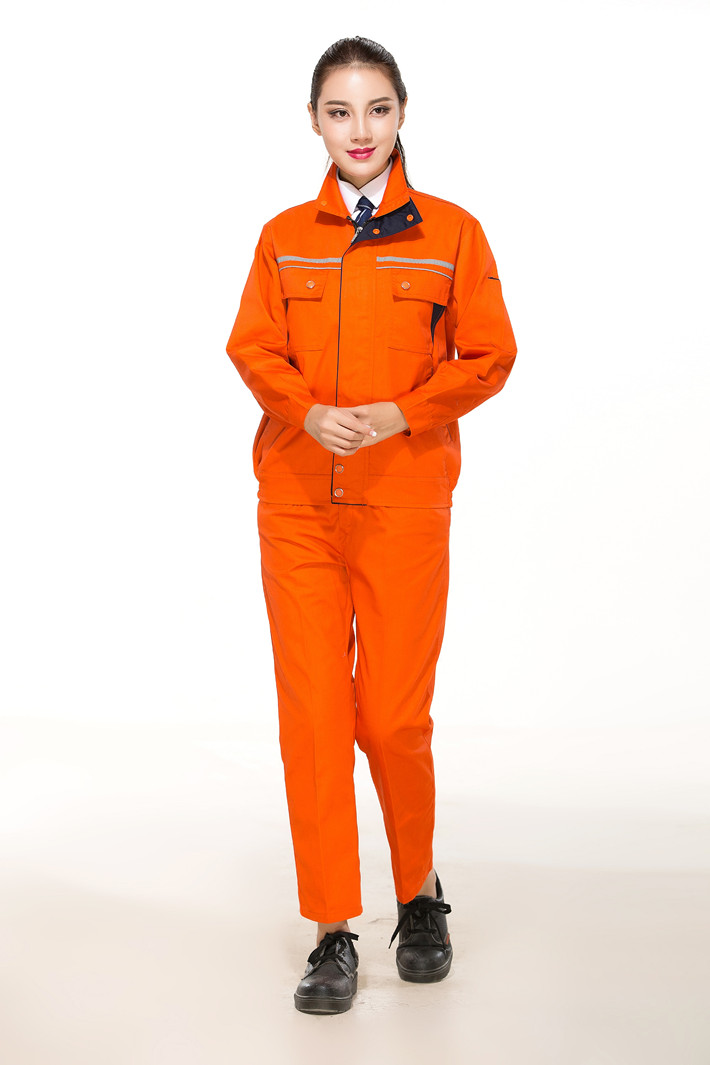 淮南工作服定做廠家定制煤礦機械工廠桔黃色立領拼色GZ-8024