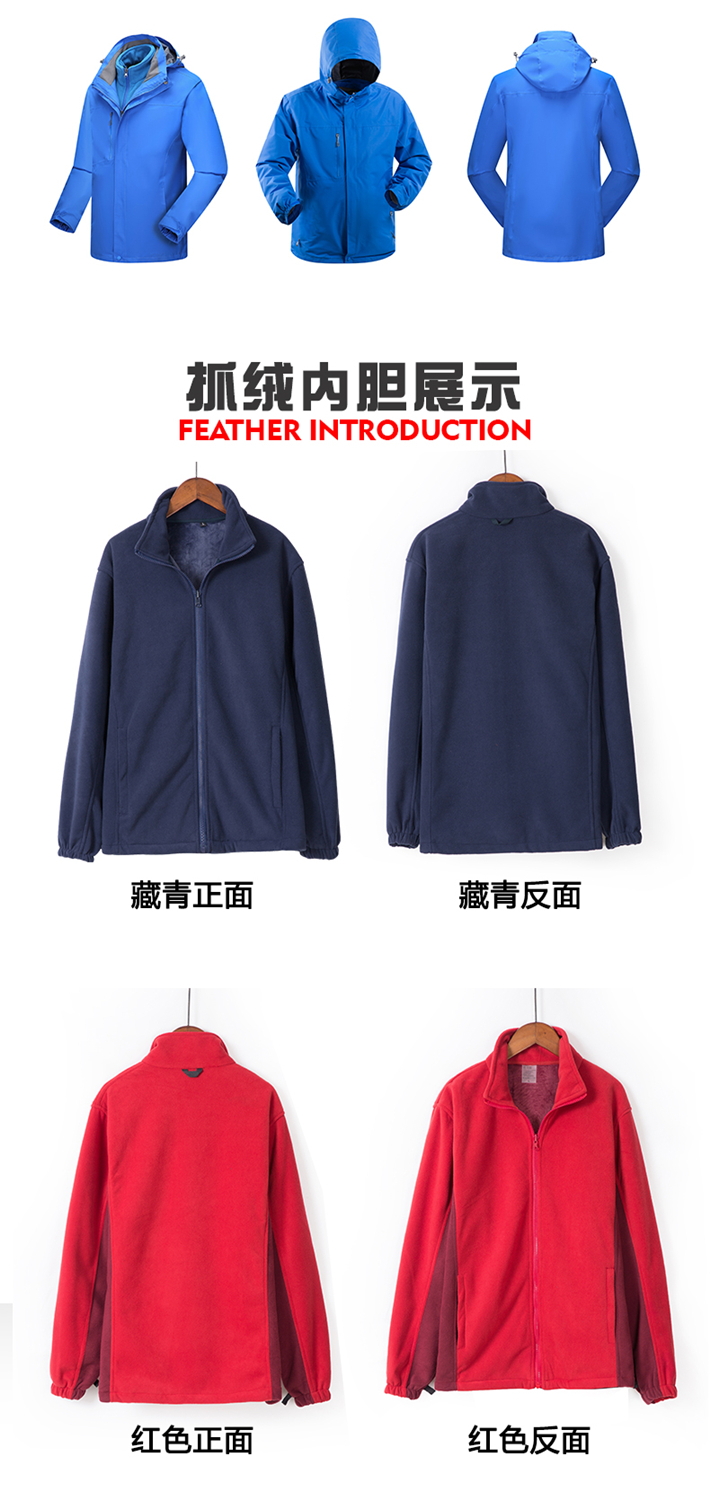 生產工藝:采用拉鏈壓膠防水工衣,可拆卸內膽、袖口松緊魔術貼
