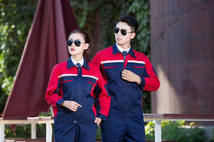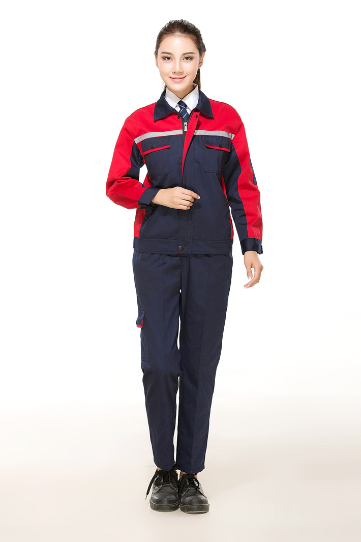 滌棉藏青色色拼紅色工作服套裝GZ-8012
