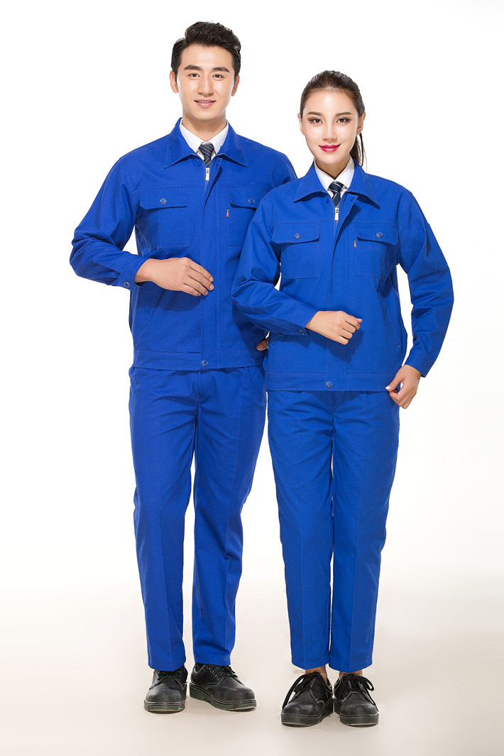 全棉紗卡藍色拉鏈式工作服長袖套裝GZ-8020