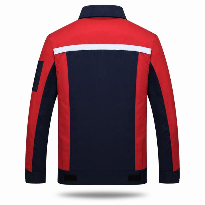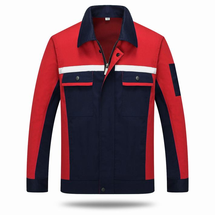 滌棉反光條藏青色拼紅色馬鞍山工作服GZ8012