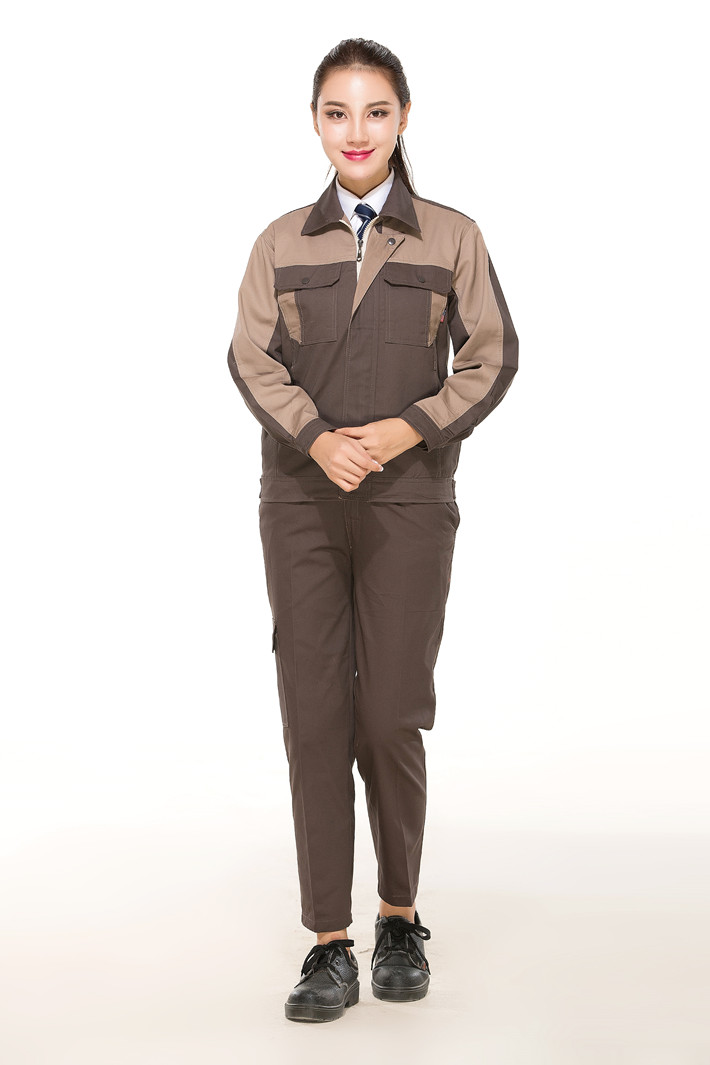 全棉紗卡卡其色拼灰色拉鏈式工作服長袖套裝GZ-8023