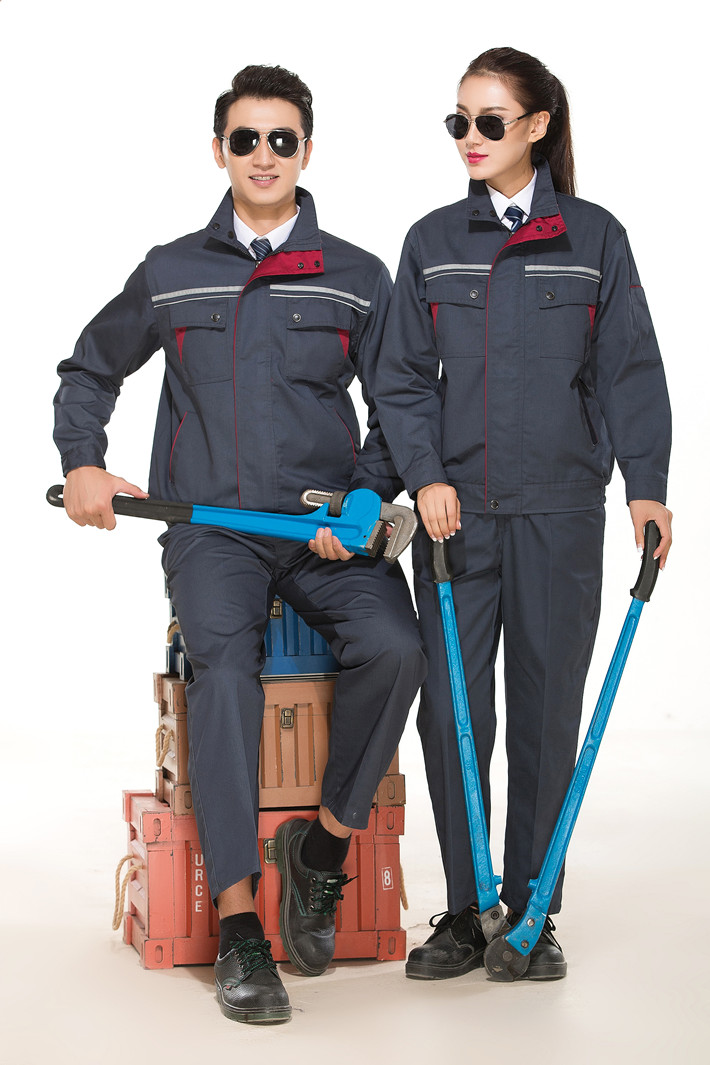 滌棉深灰色立領拼色拉鏈式反光條工作服長袖套裝GZ-8029