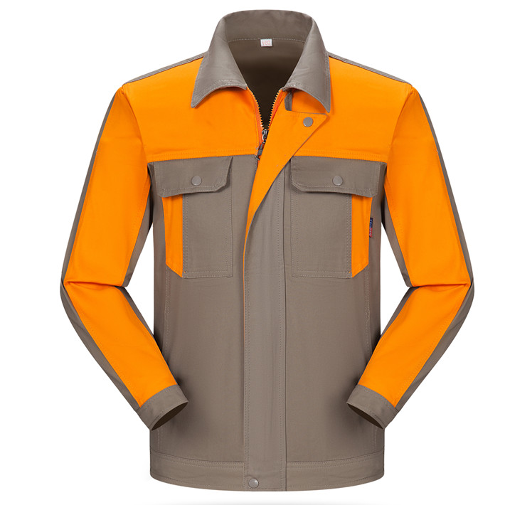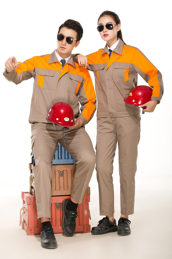 全棉紗卡灰色拼桔黃色拉鏈式工作服長袖套裝GZ-QM8017