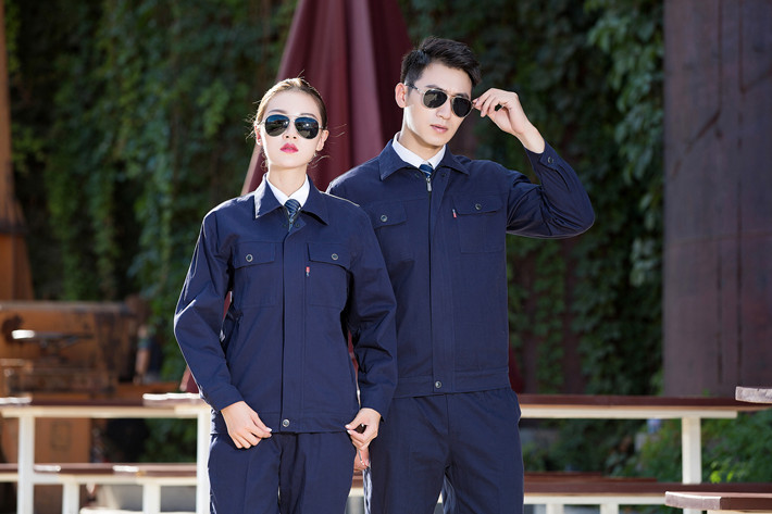 全棉紗卡藏青色拉鏈?zhǔn)焦ぷ鞣L(zhǎng)袖套裝GZ-QM8021