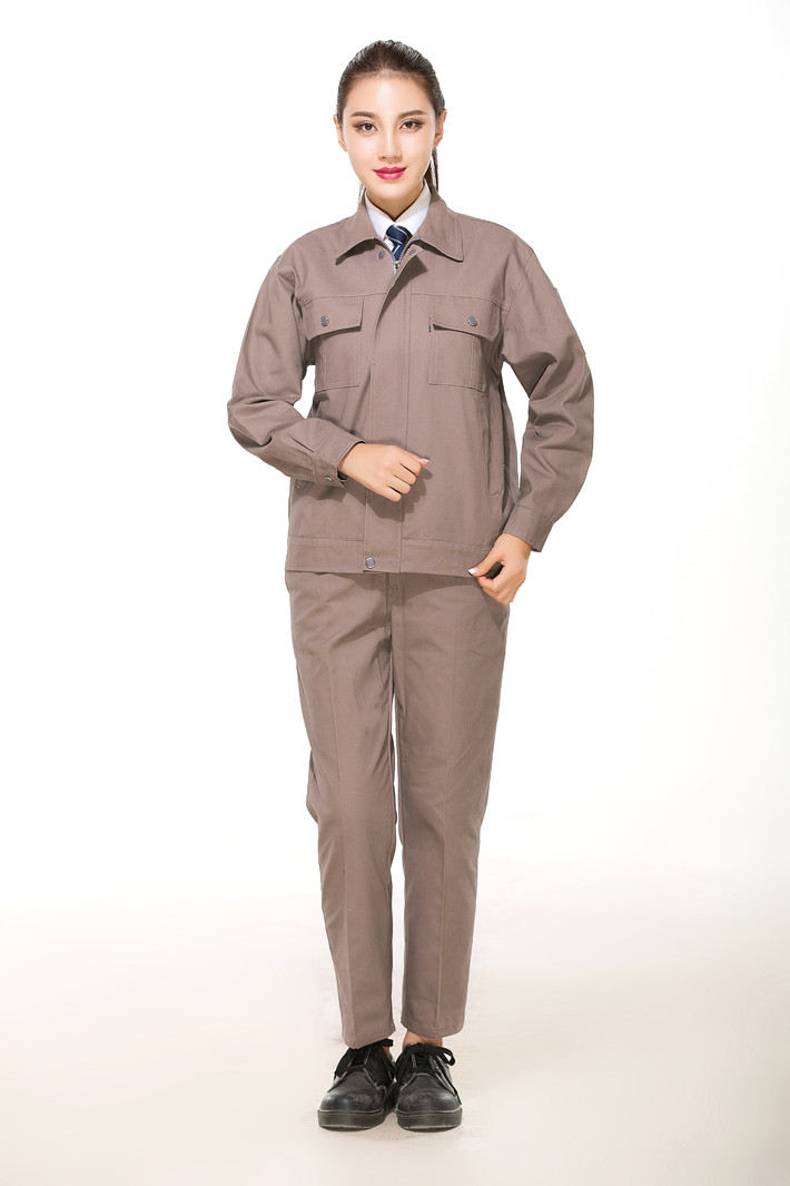 全棉紗卡卡其色拉鏈式工作服長袖套裝GZ-QM8022