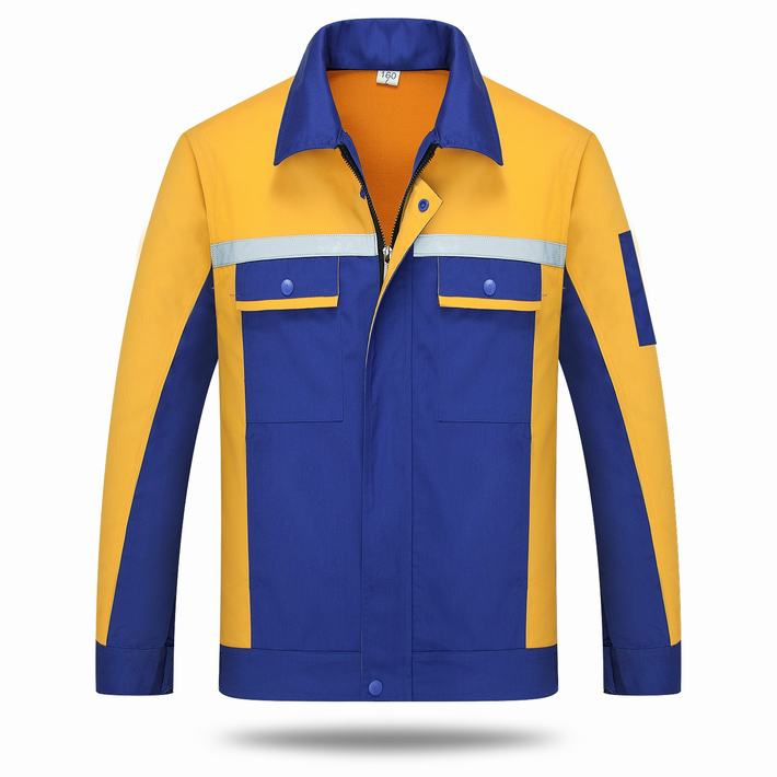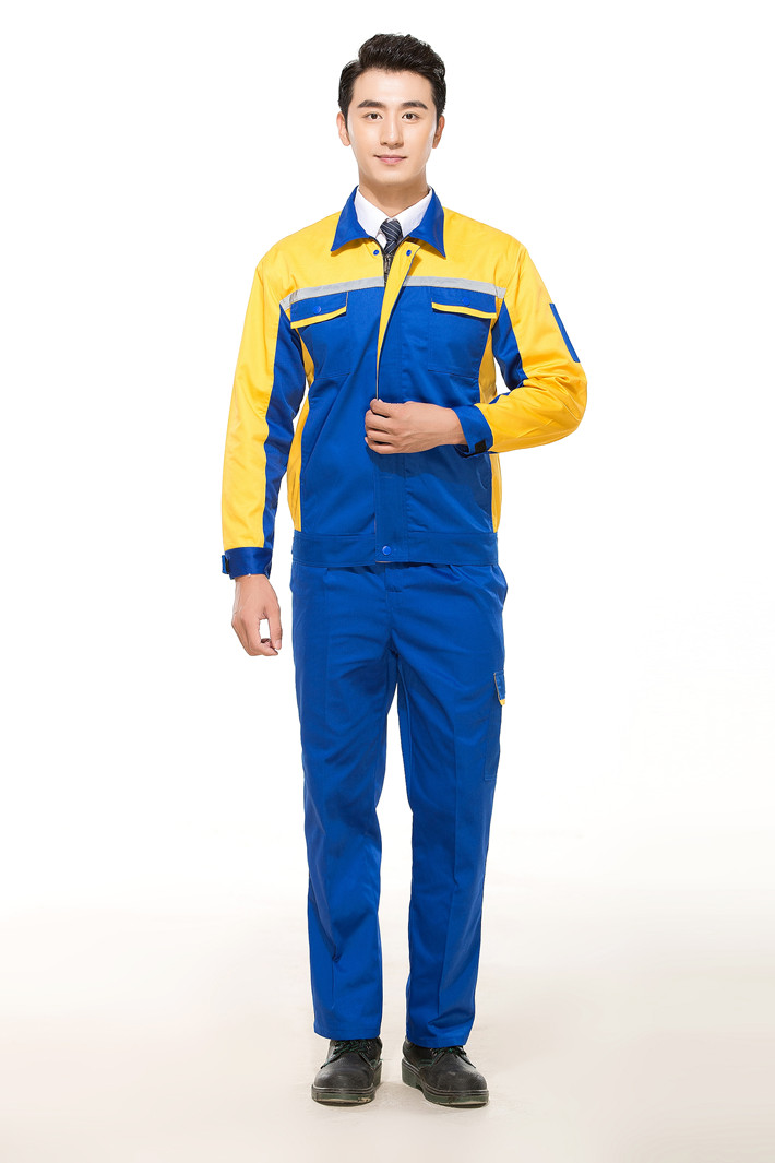 滌棉藍色拼黃色反光條工作服長袖套裝GZ-DM8014