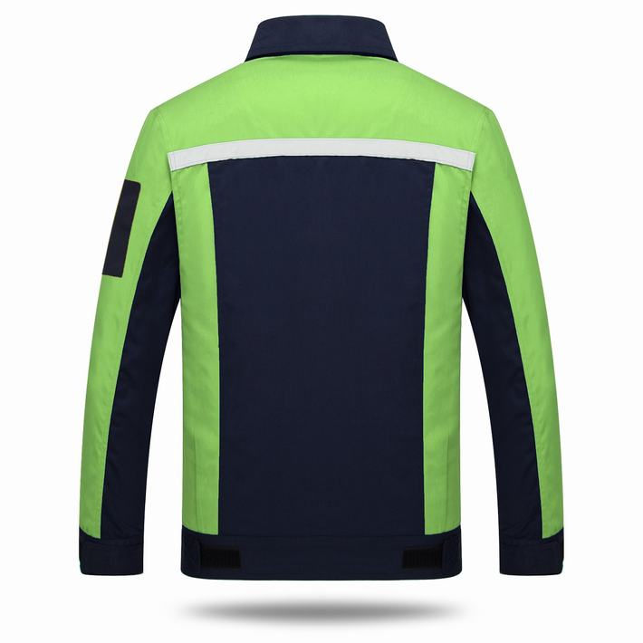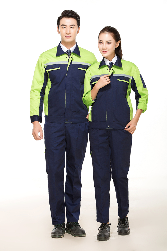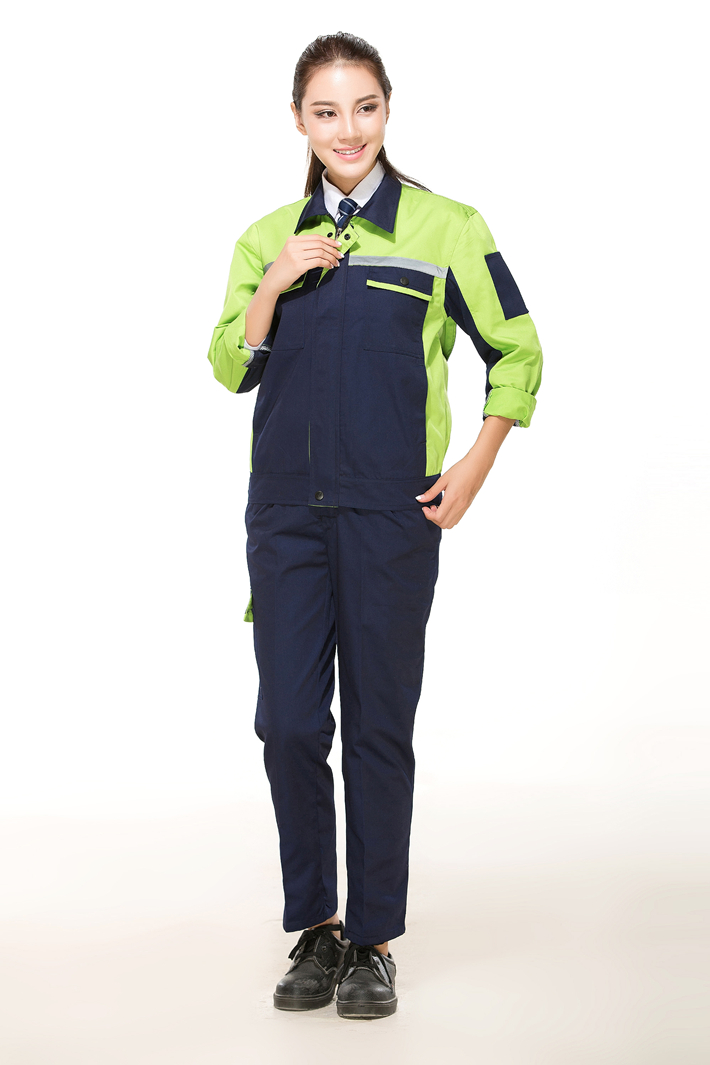 滌棉藏青色拼綠色反光條工作服長(zhǎng)袖套裝GZ-FGT8016