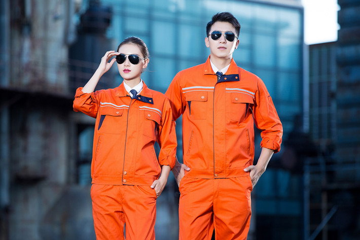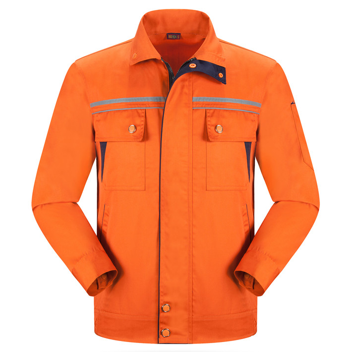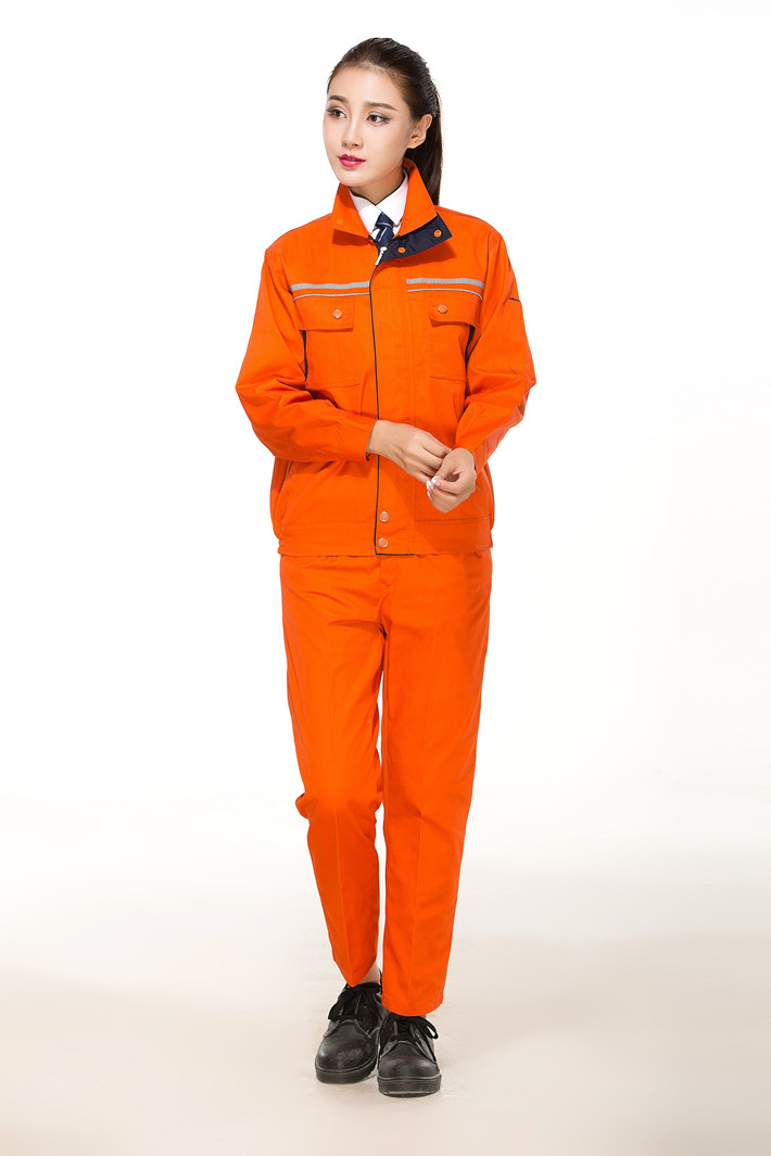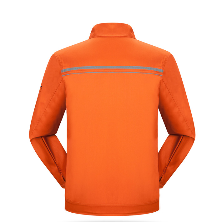 滌棉桔黃色立領拼色拉鏈式反光條工作服長袖套裝GZ-FGT8024
