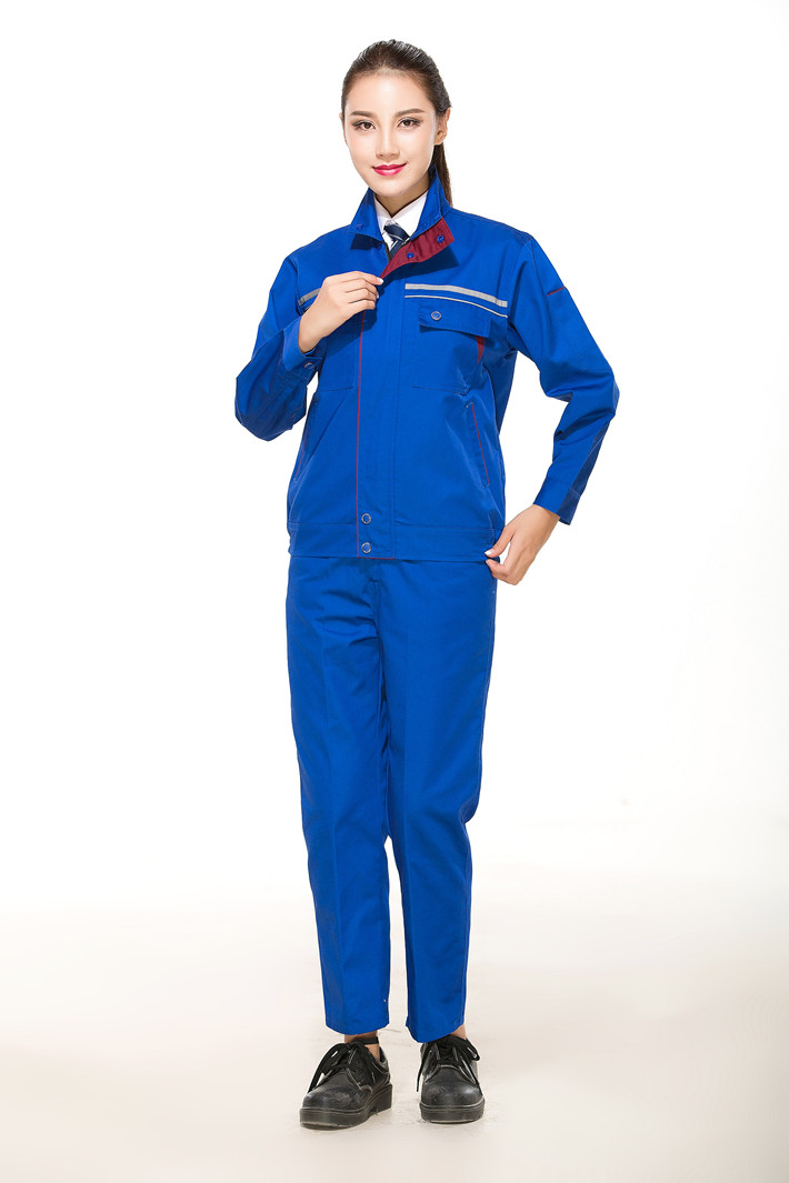 滌棉寶藍色立領拼色拉鏈式反光條工作服長袖套裝GZ-FGT8025