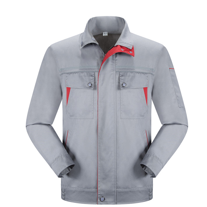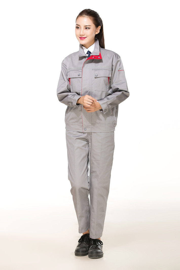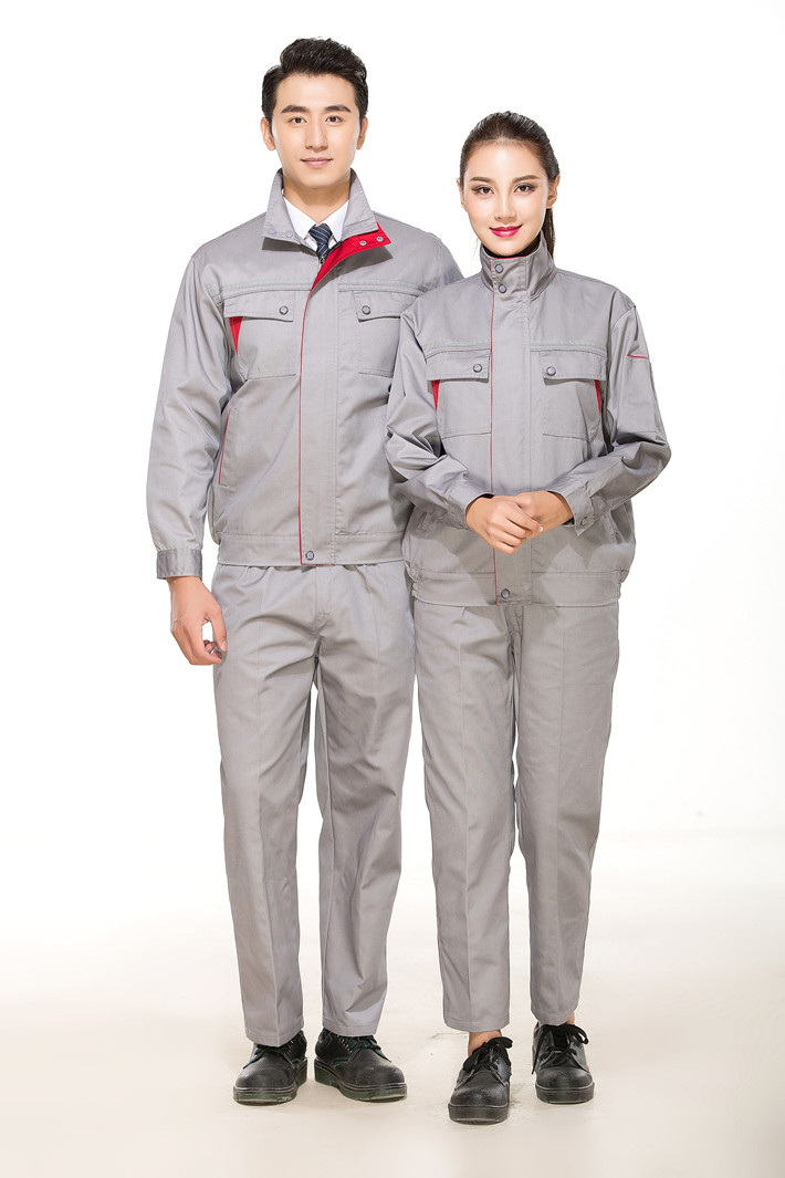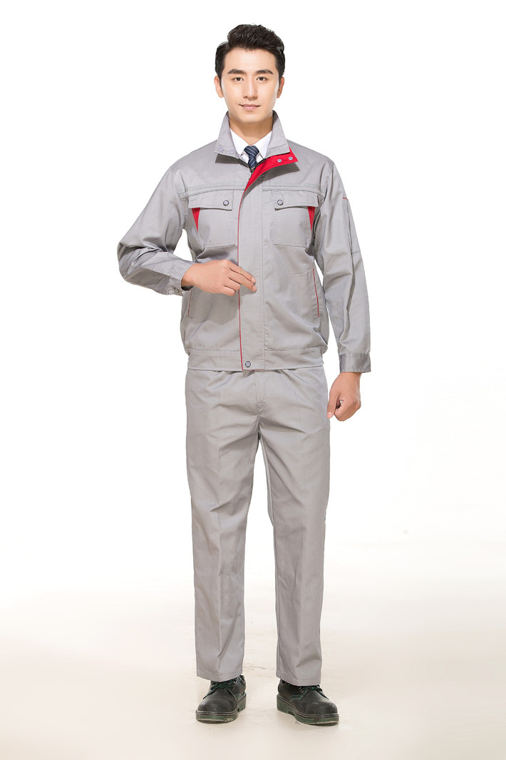 滌棉淺灰色立領(lǐng)拼色拉鏈?zhǔn)椒垂鈼l工作服長袖套裝GZ-FGT8027