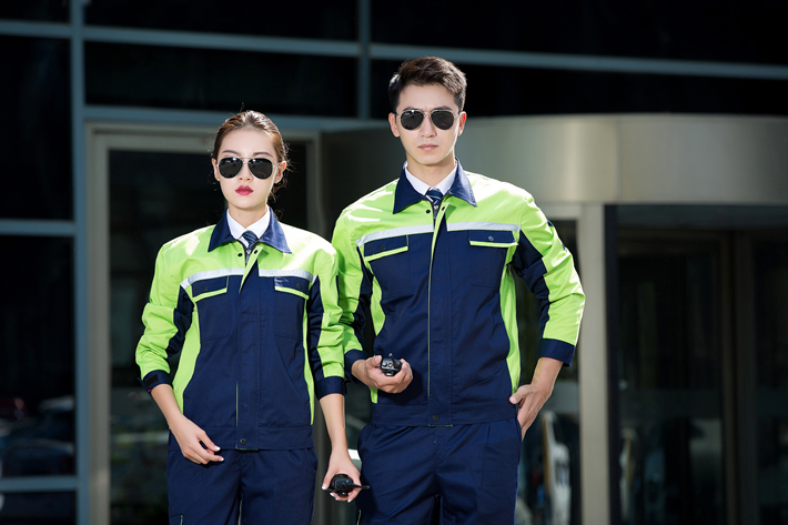 合肥反光條工作服定做款式藏青色拼綠色工作服長袖套裝GZ-8016